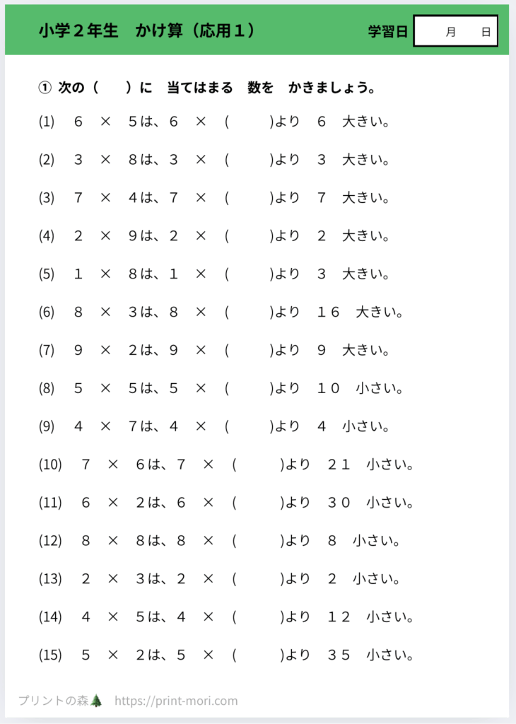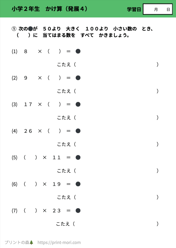 ● かけ算・・・・・・・・・・・・・・・・・・標準×3、応用×3