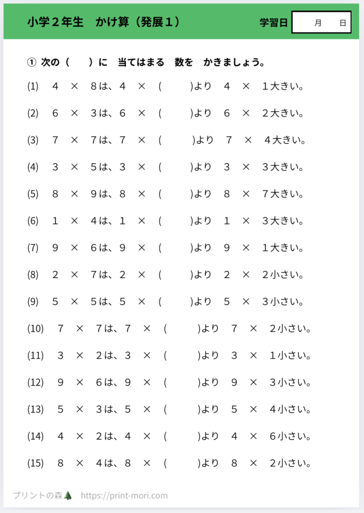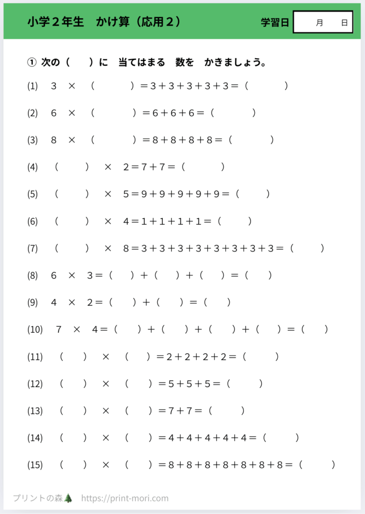● かけ算・・・・・・・・・・・・・・・・・・標準×3、応用×3、発展×4
