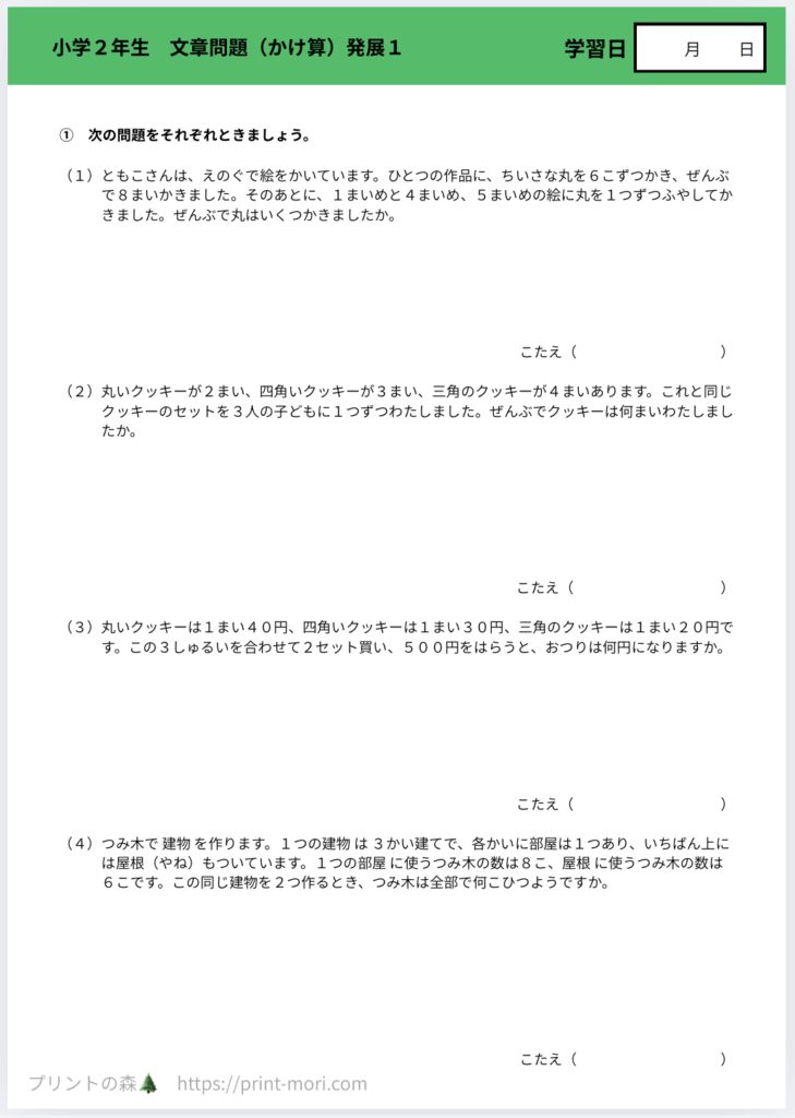 ● 文章問題(かけ算)・・・・・・・・・・・・・標準×2、応用×2、発展×2