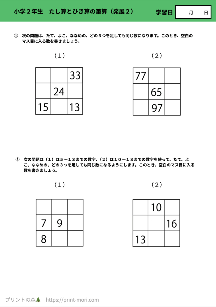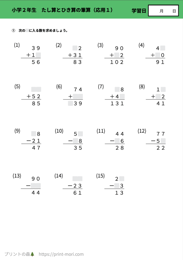 ● たし算とひき算の筆算・・・・・・・・・・標準×4、応用×2、発展×2