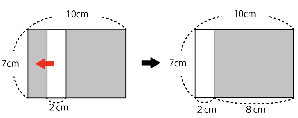 図のように中にある長方形を左端に持ってくると一発で計算できる。