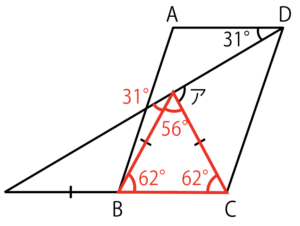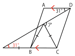 平行四辺形ABCDよりADとBCは平行なので錯角の関係より左下の角度も31°。